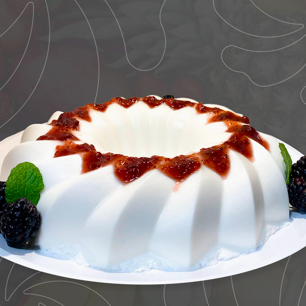 Gelatina espumosa de yoghurt en salsa de zarzamora